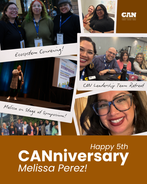 Melissa marks her 5th CANniversary on February 22 and joined the CAN team in 2021 alongside Leslye Lugo, making them our second-ever set of “CAN Twins.” As the driving force behind CAN’s events, Melissa brings organization, creativity, and expert project management to every statewide convening and communication effort. Her work keeps everything running smoothly and looking great.
