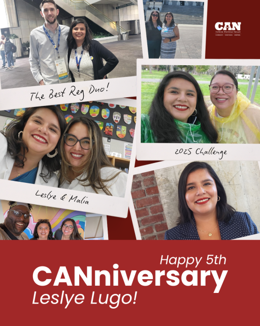 Leslye celebrates her 5th CANniversary on February 22 and joined the CAN team in 2021 on the same day as Melissa Perez, making them our second-ever set of “CAN Twins.” Leslye plays a key role in CAN’s Data and Research work, including authoring the State of the State of Expanded Learning and supporting the Research, Evaluation, and Strategy Committee (RESC) behind the Data Snacks. She also contributes to our Policy and Advocacy efforts and is deeply passionate about ensuring the field is recognized and celebrated for the incredible work happening every day.
