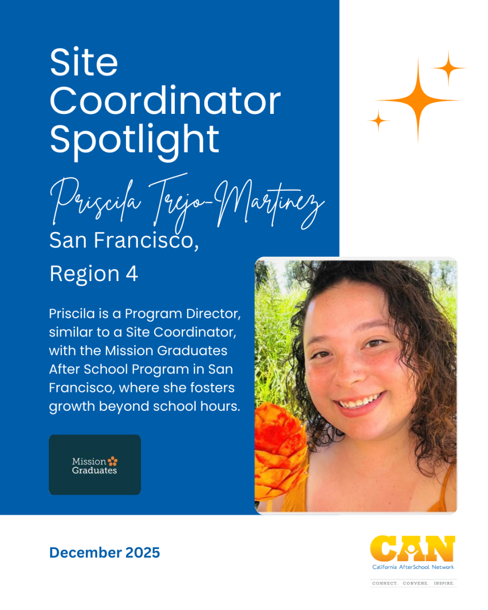 We’re excited to shine a spotlight on Priscila Trejo-Martinez, from the organization Mission Graduates in San Francisco, Region 4, whose leadership in community engagement inspires the field!