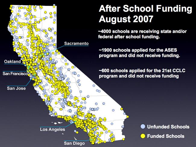 As is apparent, California has seen a major increase in after school opportunities for children and youth statewide. There are however, still many schools that are not currently receiving state or federal funding for After-School. The demand for after school programs in California is still great. During the latest application process, approximately 1900 schools requesting almost $200,000,000 in ASES program funding were denied. Additionally, in the Cohort 4 grant competition, more than 600 elementary, middle and high schools requesting over $100,000,000 dollars were denied funding for the 21st Century Community Learning Centers program.
