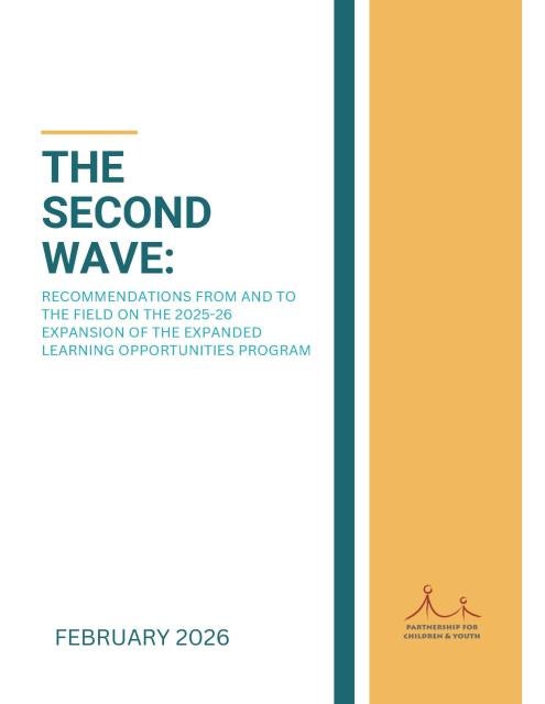Join the Partnership for Children and Youth (PCY) and the California AfterSchool Network for a webinar showcasing learnings from PCY’s newly released resource, The Second Wave. This webinar is an opportunity to explore recommendations from practitioners and technical assistance providers with deep experience in implementing ELO-P. The resource and webinar hope to support districts with increased funding as they embark on their ELO-P expansion journey and continue building the quality of their programs. The webinar will include a panel of practitioners who helped inform the memo.