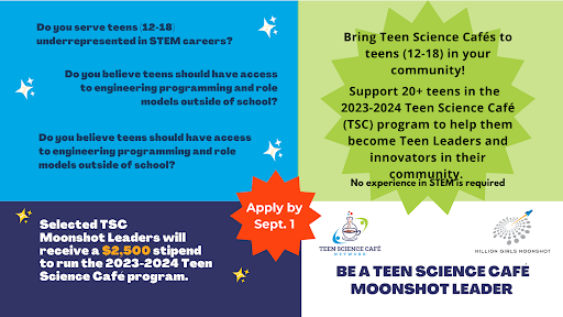 Become a Teen Science Café Fellow! Teen Science Cafes are a free, fun way for teens to engage in lively conversations with STEM experts that explore the advances in science and technology that affect their lives. Teen Science Cafés are for teens, by teens. Cafés are typically run about an hour and a half once per month during the school year.